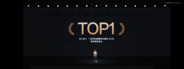 【CNMO科技消息】3月24日,一加中国区总裁李杰在一加15T发布会上宣布:2025年,一加手机实现44%的销量增长。2026年第1周至第11周,一加实现了27.4%的同比增长,增速行业第一。