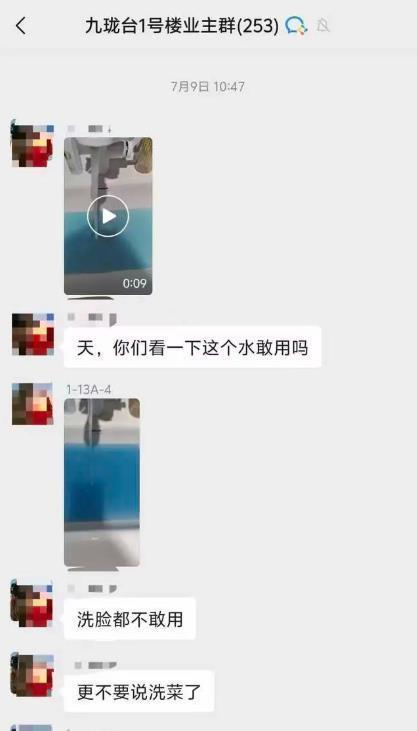 据报道,房子是2024年交付的,大部分业主当年下半年装修入住。2025年4月18日,有业主首次发现家里的自来水变成蓝色,“高层颜色淡,低层颜色很深,根本就不敢用”。反映给物业,物业说反馈给自来水公司,但没有结果,还说是业主家里使用了洁厕灵反水。问题一直持续到11月底,业主们持续反映后,自来水公司开始着手调查,并对业主家里的自来水管道进行拆除。